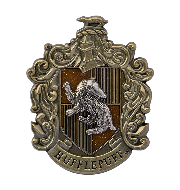 Celebrate house pride and add this bespoke Hufflepuff pin to your Harry Potter collectibles. The pin depicts a badger, the iconic symbol of the Hufflepuff house, overlaying the iconic Hufflepuff house crest.