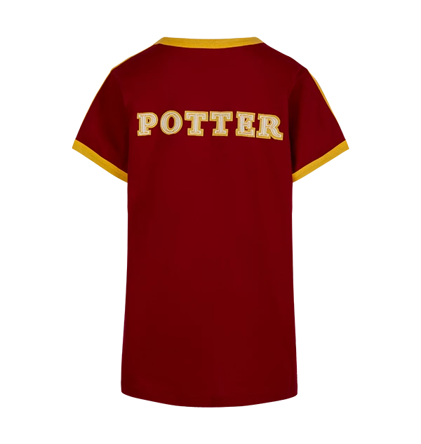 Celebrate your house pride with this athletic Kids Harry Potter Seeker Jersey. The t-shirt has been designed with scarlet red and yellow colouring, representing the traditional colours of the Gryffindor house. The t-shirt is complete with the number ‘07’ printed on the front in gold applique, and the name ‘Potter’ on the reverse.Â