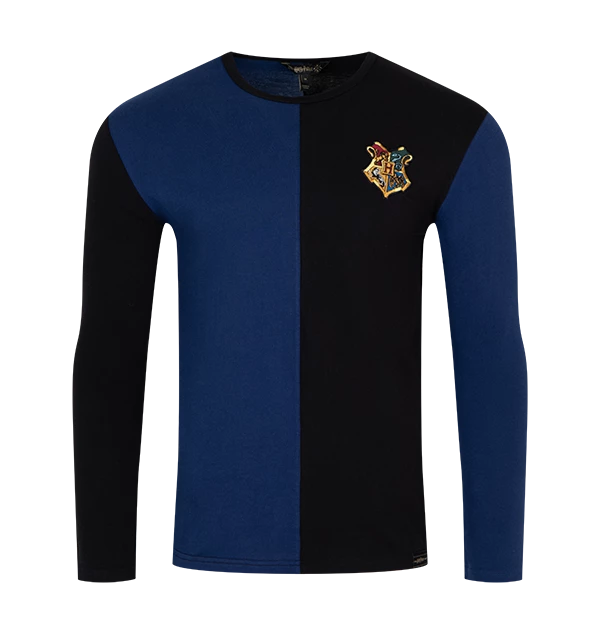 Show your loyalty and celebrate your house pride with this bespoke Ravenclaw Triwizard Shirt. The long-sleeved shirt comes in the traditional house colour of navy blue which is combined with black stripes. The iconic Hogwarts crest is embroidered onto the left-hand side of the shirt which is made up of the symbolic Hogwarts house animals; a lion for Gryffindor, a serpent for Slytherin, a badger for Hufflepuff and an eagle for Ravenclaw.