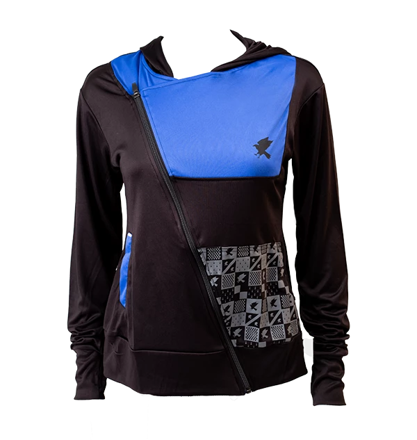 Light weight and breathable, the fabric is comfortable and flexible enough to conform to your every move. Featuring a sleek modern asymmetrical collar with zip front and overall geometric design, every Ravenclaw sporting one of these fashionable jackets will be turning heads. An eagle can be seen on the left chest and in a grey heraldic pattern featured prominently at the bottom. Two front pockets are lined in contrasting colours, while the Ravenclaw house and Hogwarts school name are printed at the back.