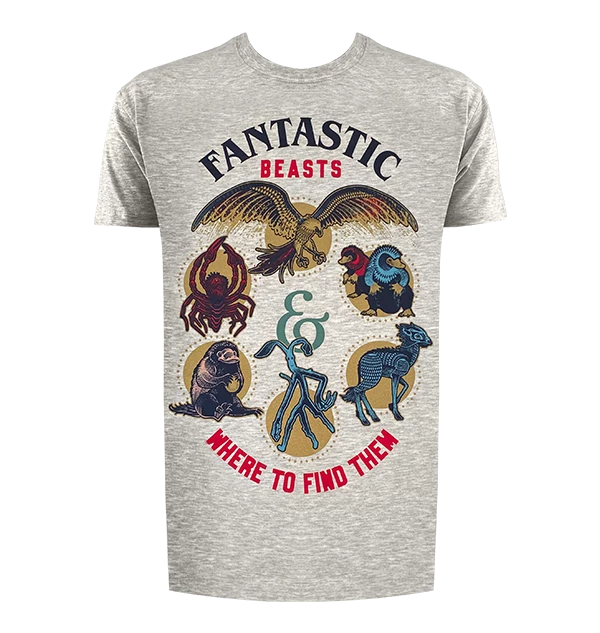Show your excitement for the release of the new film Fantastic Beasts: The Secrets of Dumbledore with this exclusive marl grey t-shirt!